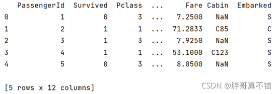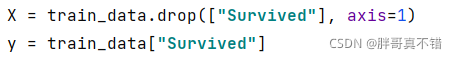 Survived为标签数据,除 Survived之外的为特征数据。关键代码如下: