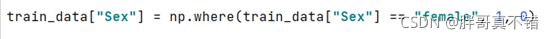 使用Pandas工具的where方法把Sex数据项转换为0、1数字,来满足机器学习的需要,关键代码: