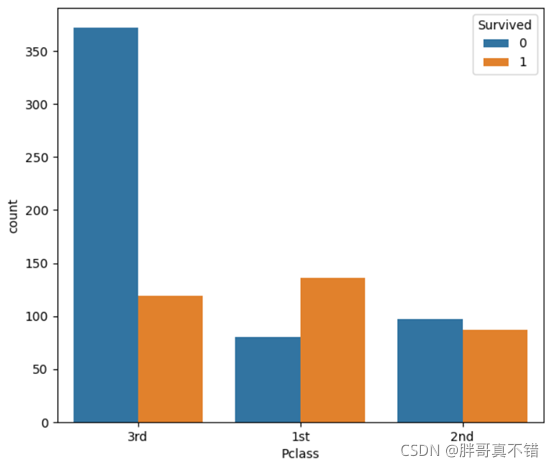 从上图可以看出,在3等舱死亡的最多,在1等舱生存的最多。