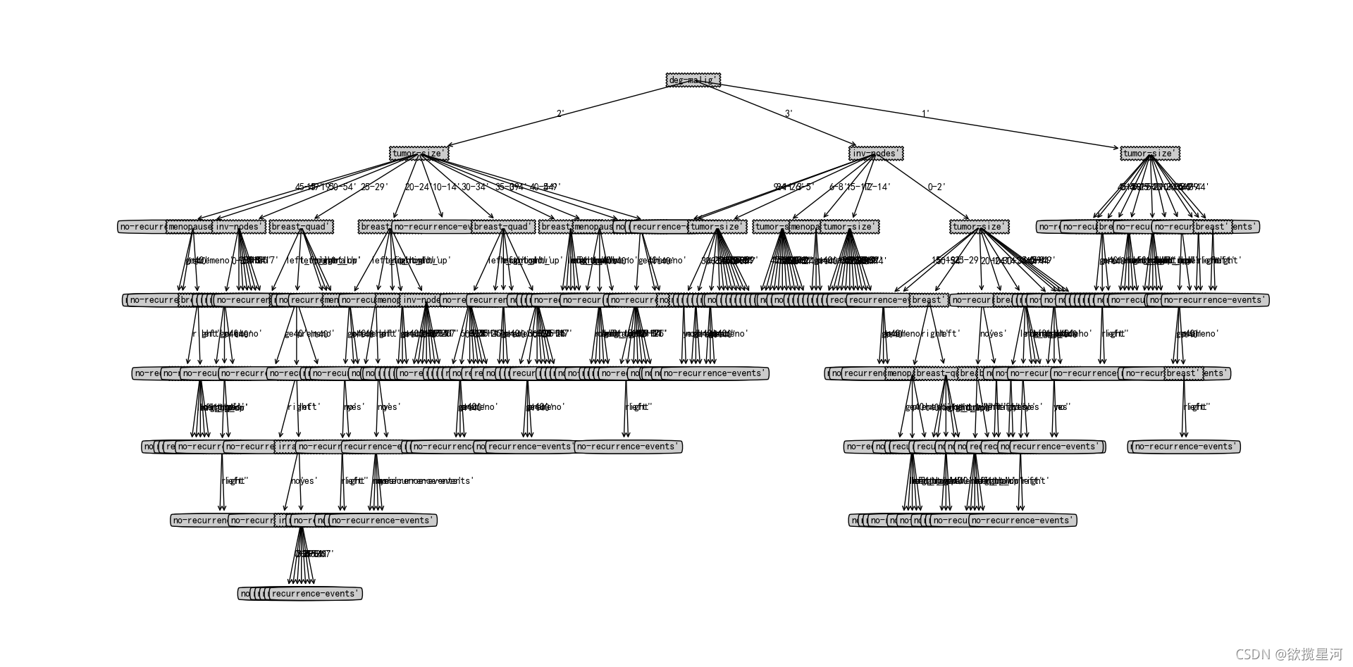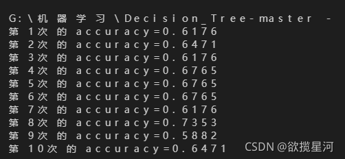 results.append(dtClassify(myTree,test,labels))#获取测试集中每个样本经过判别后的标签