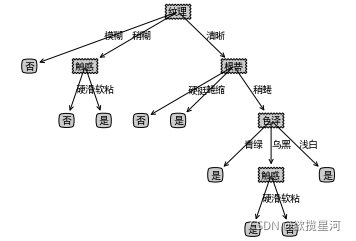基于西瓜书西瓜数据集2.0生成决策树,画出决策树,并输入样本进行预测类别。