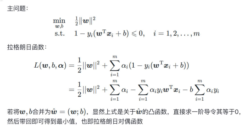 ? ? ? ?此优化问题为含不等式约束的优化问题,且为凸优化问题,故可以用很多求解凸优化问题的方法求解该问题。这里采用拉格朗日对偶来求解。