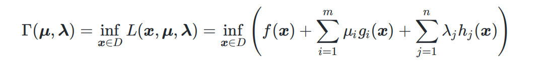 定义:上述优化问题的拉格朗日对偶函数 ,为 关于 的下确界(下限),也即