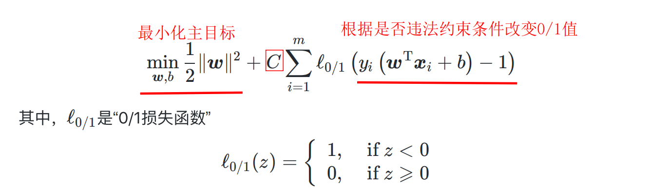 由以上原则,软间隔的优化目标(策略)可以写为: