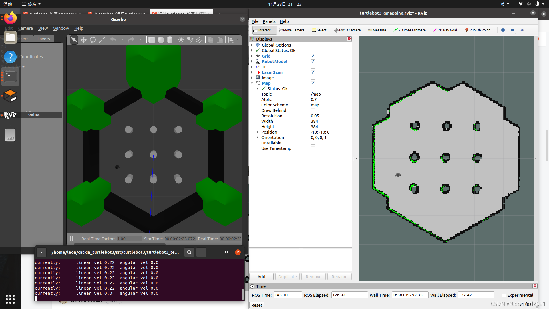3.打开键盘,控制turtlebot3四处移动,直到建图形成闭环