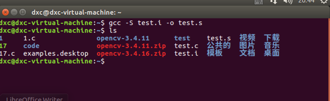 dxc@dxc-virtual-machine:~/test1$ gcc -c hello.c