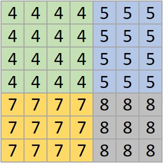 但是,问题来了。我们把上面三行跟左边三列的像素分别拿到下面跟右边。窗口大小为 7 的话,最下面跟最右边在对 patch 做操作的时候,就会把原本不相邻的 patch 去做操作。也就是说,本来就不相关的,没有语义联系的几个部分在这里会被计算相关性。首先是没有意义,其次就是会导致网络学习错误的东西。(如下图 1 跟 2,3 跟 6 ,4578,去做 Attention 是不是很不合理,本不相邻)