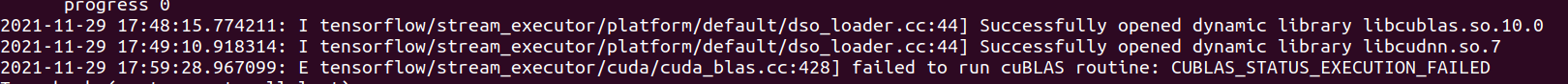 然后报最下面的一行错,可以看到,cuda和cudnn虽正常打开,但是并没办法使用,就是因为30系列的卡只支持cuda11.x,这也就意味低于tf-gpu=2.x版本的代码是不能运行的,tf-gpu=1.x的版本更不可以。怎么解决呢,继续看问题2和3。 PS:非正常情况,因为Geogle不再维护tf1.x,但是Nvidia公司有在维护一款tf-gpu=1.15.x,且可以运行在30系列的卡,该方法需要科学上网和指定的ubuntu版本(ubuntu20.x),因此我就没有尝试,有兴趣的可以一试,链接:https://blog.csdn.net/wu496963386/article/details/109583045)