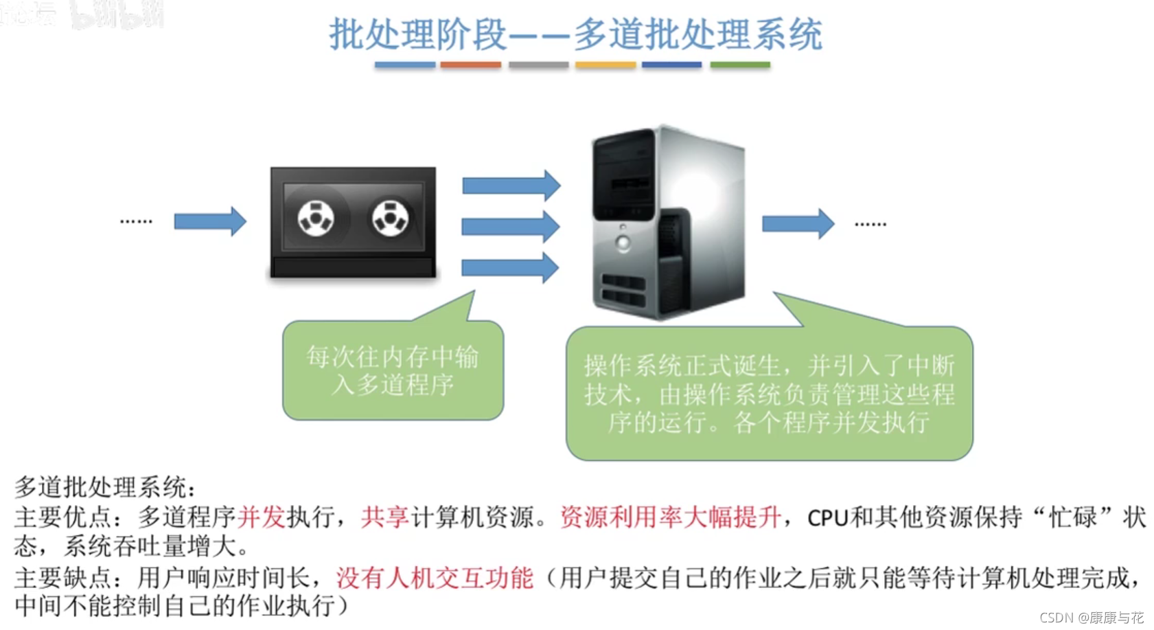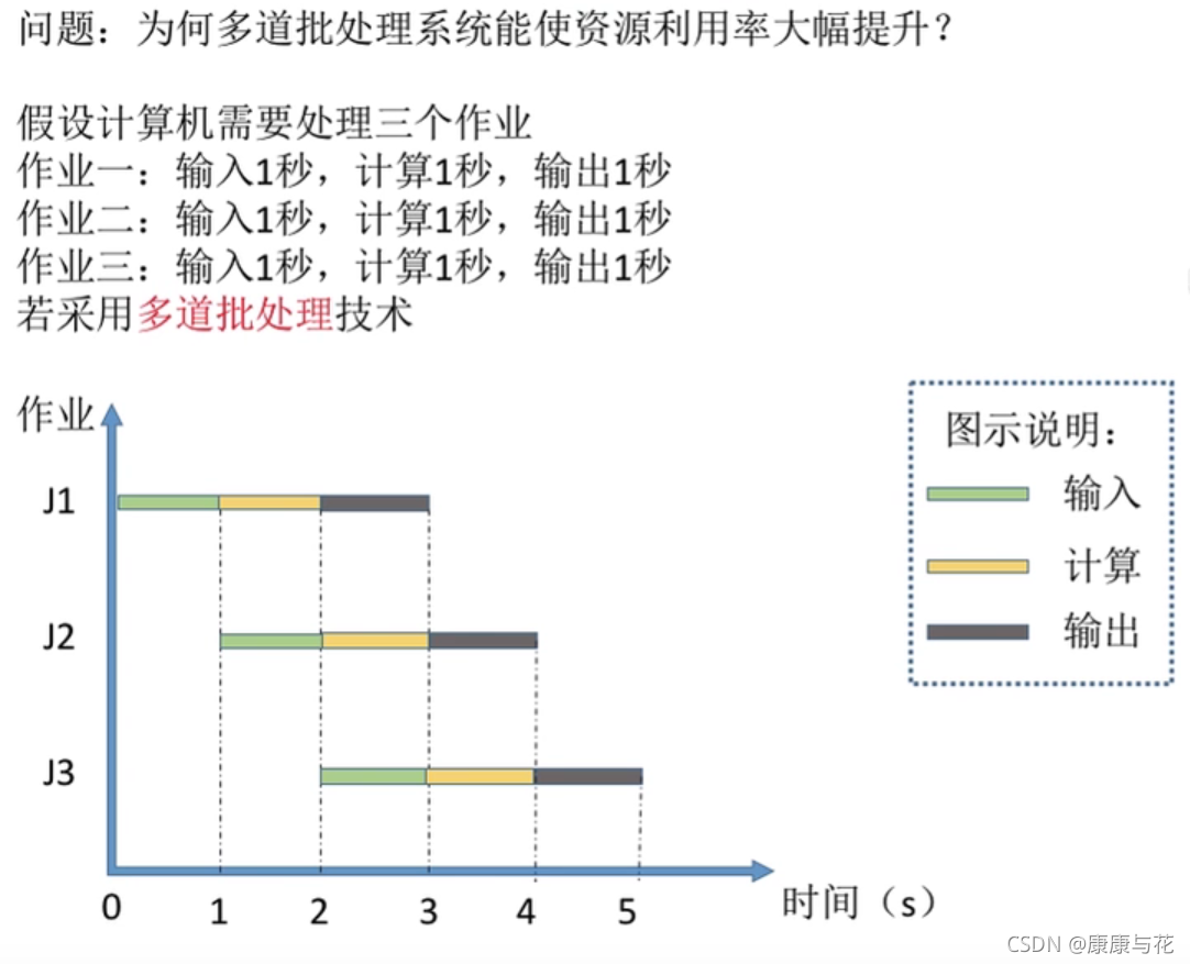 ?多道批处理系统可以使资源得到大幅提升。等一个资源空闲出来,接着进行下一个问题处理,? ? ? ?体现出并发性
