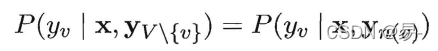 令G=<V,E>表示结点与标记变量y中元素一一对应的无向图,yv表示与结点v对应的标记变量,n(v)表示结点v的相邻结点,若图G的每个变量yv都满足马尔可夫性,即: