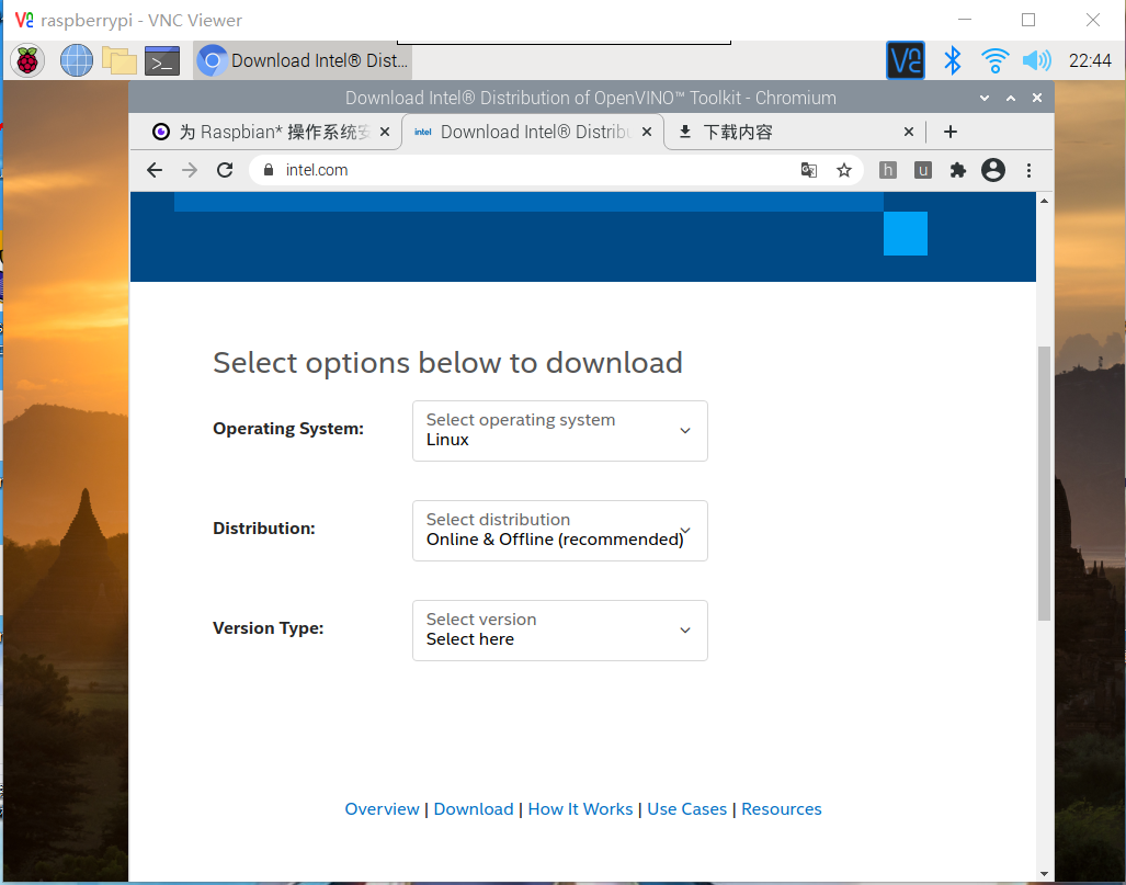 点击安装openvino  最后一个选择版本 文件压缩包下载到了Downloads目录下面