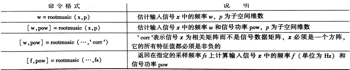 rooteig命令基于特征向量法计算估计的离散频谱和相应的信号功率估计