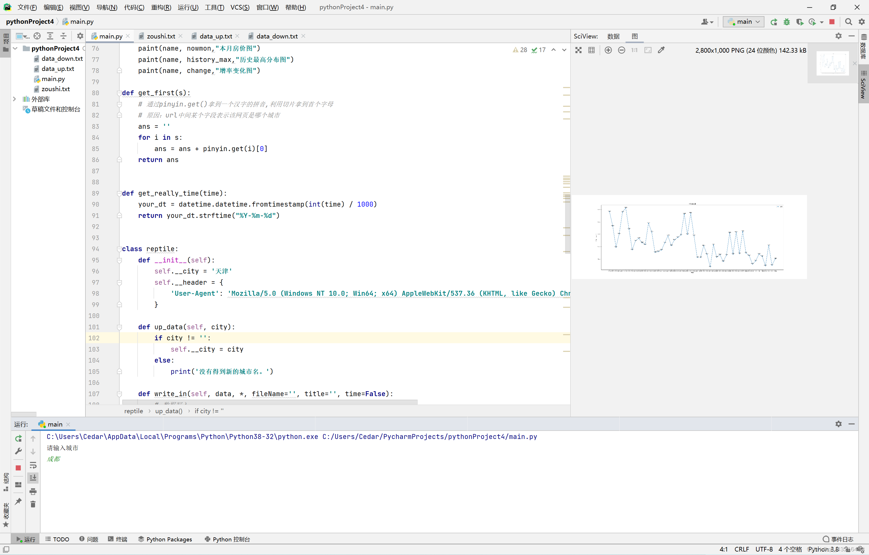 我们主要爬取的内容包括了房价的走势,上月的价格,本月的价格,和历史最高的价格和涨幅,等信息做了爬取并用matplotlib 画出了一个折线图并将其保存下来