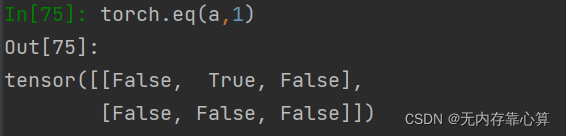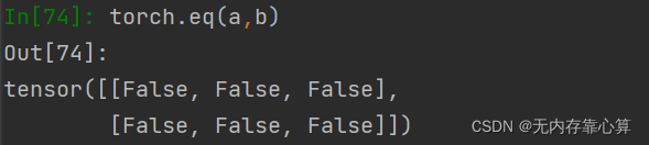 一种是比较两个tensor之间,维度要一致,逐个元素进行比较,相同的返回True,否则返回False。