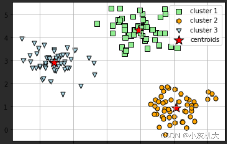 - 思想:我们假设相似的事物之间的距离也会比较近,即:“物以类聚,人以群分”的思想。因此对于给定的样本集, 按照样本之间的距离,将样本集划分为k个簇。然后让簇内尽量紧密,簇间尽量距离大,从而实现分类。