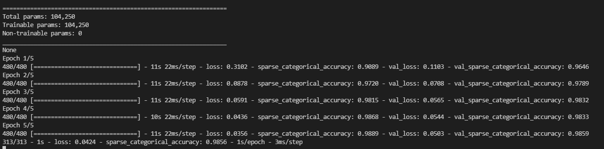 history = model.fit(X_train, y_train, batch_size = 100, epochs =5,