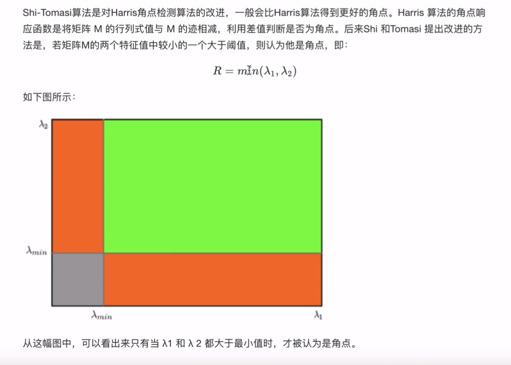 在OpenCV中实现Shi-Tomasi角点检测使用API: corners = cv2.goodFeaturesToTrack ( image,maxcorners,qualityLevel,minDistance )
