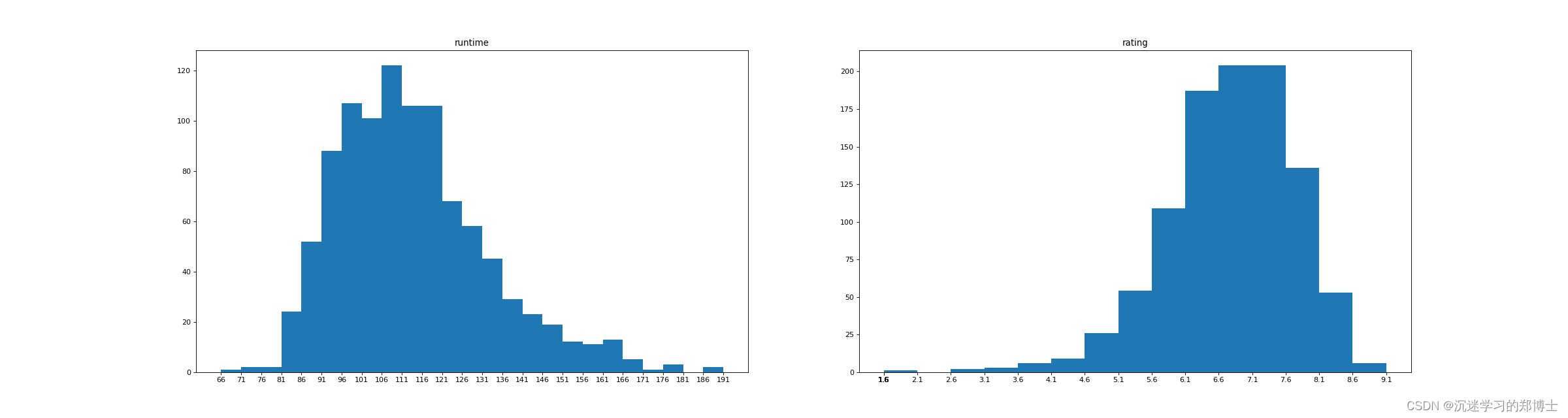 对于这些电影数据,如果我们想rating、runtime的分布情况,应该如何呈现数据?