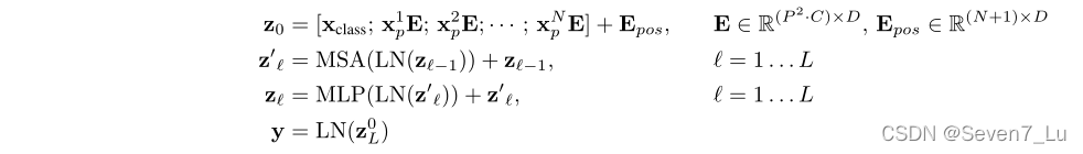 ????????Transformer Encoder由多头自注意力块MSA和MLP块组成,Layernorm(LN)在每个块之前应用,在每个块之后应用残差连接。
