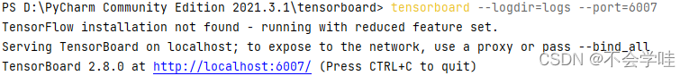 ?此时就会给我们一个打开的端口。6006如果我们要建立别的端口的话,那么可以指定端口