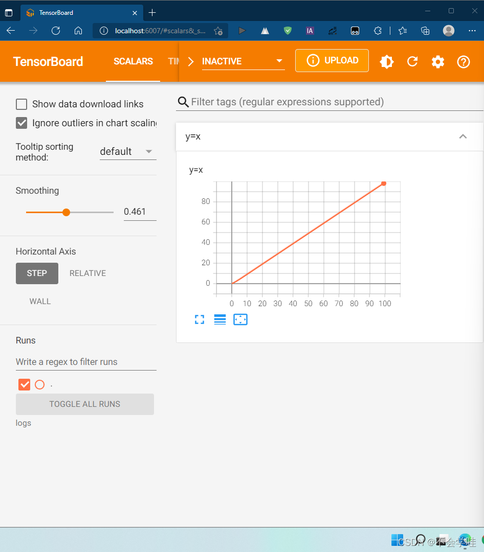 writer.add_scalar("y=x",i,i)