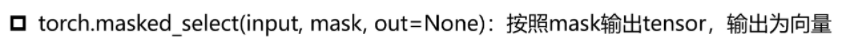 # 第一个参数为要筛选的tensor,第二个参数为boolen Tensor,将true的值输出为一个向量
