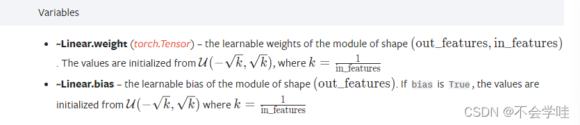 因为? :pytorch已经为我们求好了,我们只需要提供in_features和out_features和bias即可