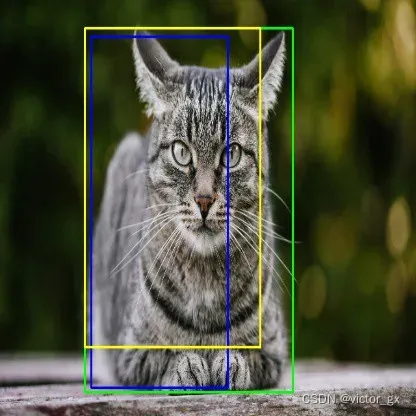 blue_box=[x3,??y3,??x4,??y4,??"Cat"??0.85]yellow_box=[x5,??y5,??x6,??y6,??"Cat"??0.75]green_box=[x1,??y1,??x2,??y2,??"Cat"??0.9]