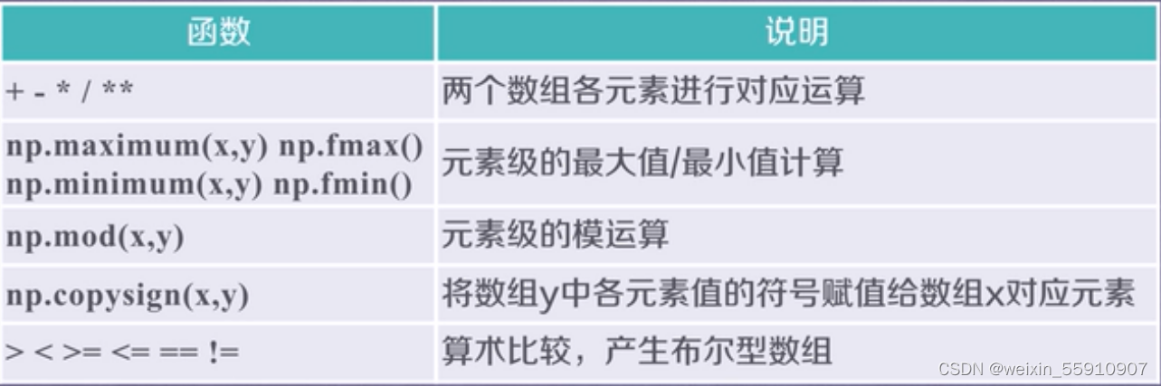 NumPy二元函数:NumPy的设计理念是希望大家可以把数组当成一个元素来对待