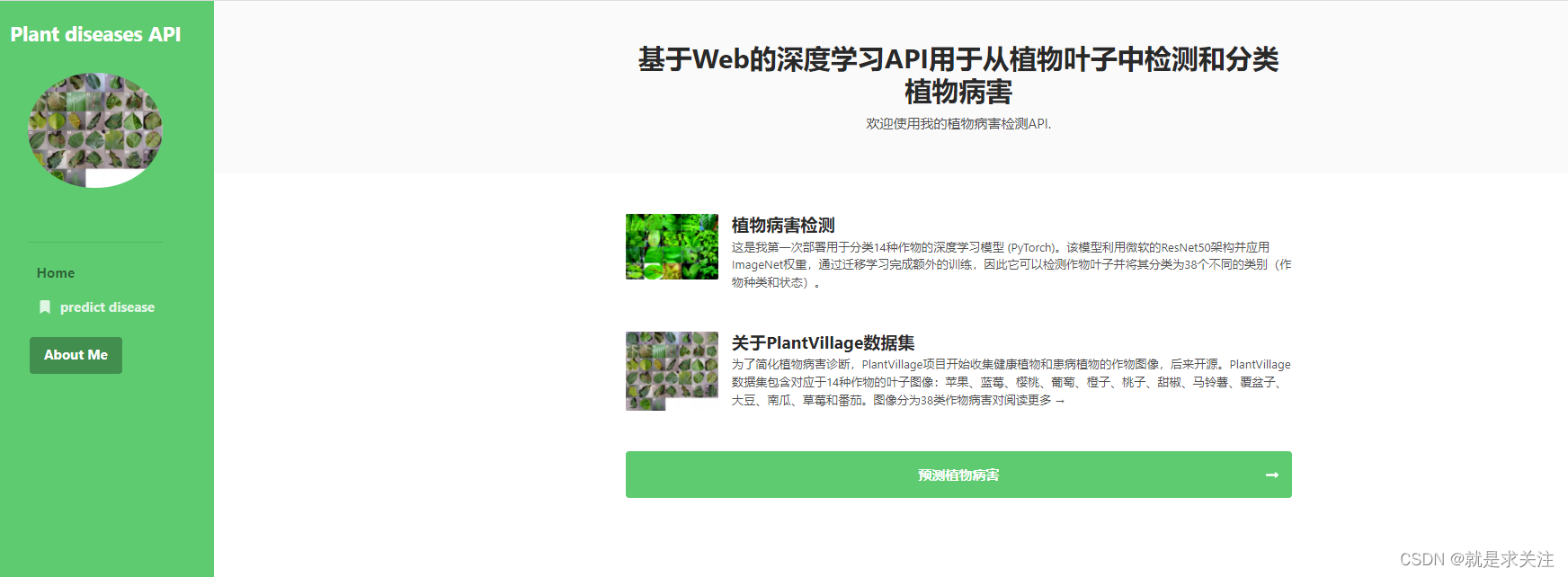 2.其次,基于训练好的ResNet50模型参数,采用 Django 框架实现了植物病害的自动检测系统。