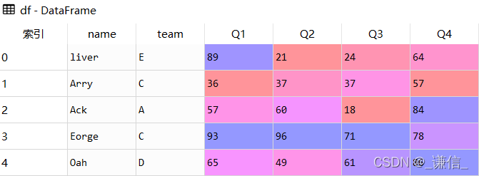 columns = ['name','team','Q1','Q2','Q3','Q4'])
