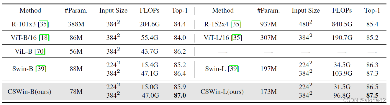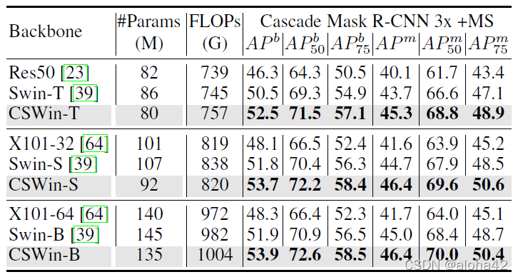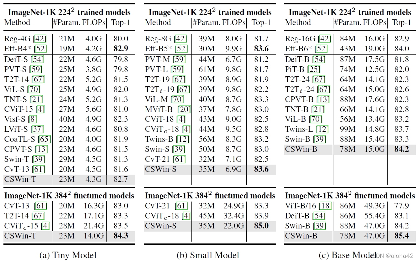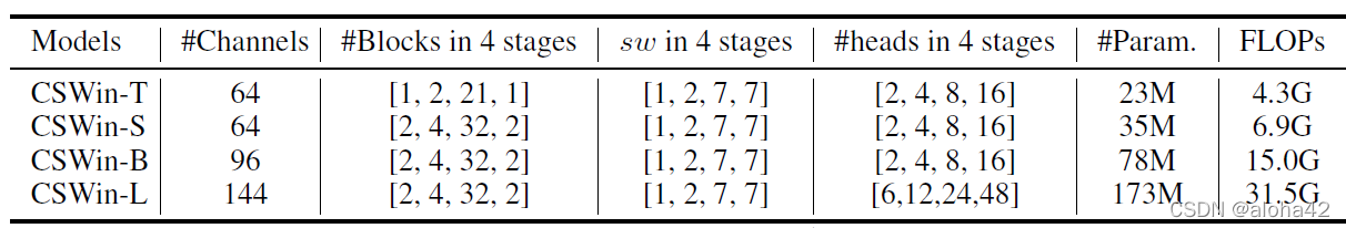 Detailed configurations of different variants of CSWin Transformer. Note that the FLOPs are calculated with 224x224 input.