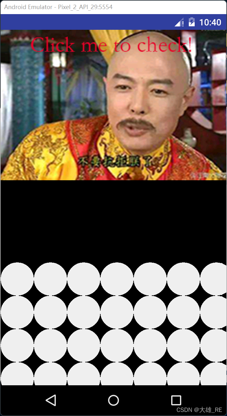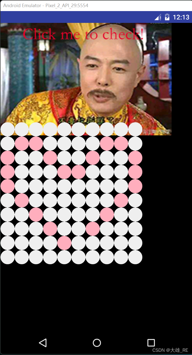 到这里我发现从代码看,app界面上的圆圈矩阵应该是10*10的,我的模拟器显示不全,怀疑是因为分辨率问题,故调大模拟器的分辨率: