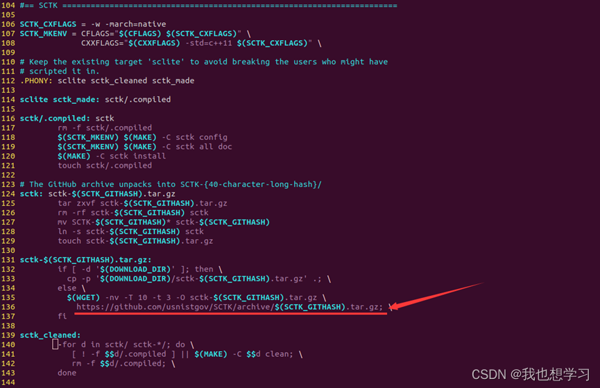 以下载SCTK为例,按图片内容找到版本号和下载地址,将$(SCTK_GITHASH),替换为版本号即可,注意到图一中版本号及其注释的内容: