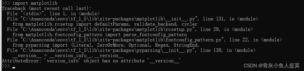 找到路径中的位置C:\Ananconda\envs\tf_1_5\Lib\site-packages\pyparsing(因为我是在tensorflow中跑的代码,相应的python环境也在这里面,你只需要找到安装python的位置,就可以找到对应的__init__.py文件)
