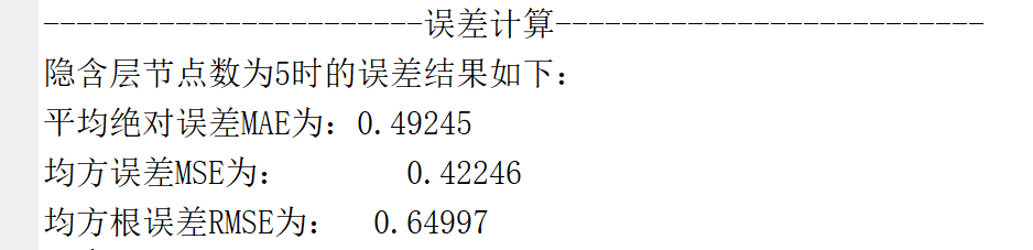 disp(['隐含层节点数为',num2str(hiddennum),'时的误差结果如下:'])