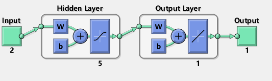 - 由于输入向量有2个元素、输出向量有1个元素,所以网络输入层的神经元有2个,输出层神经元数目为1。