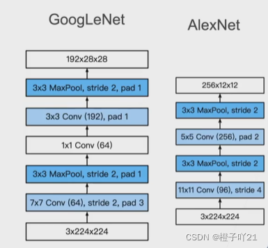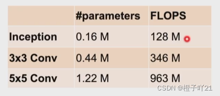 跟3x3或者5x5卷积层比,Inception块有更少的参数个数和计算复杂度。