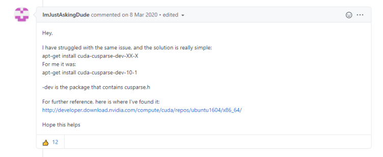 cusparse.h cusparse.h安装方法来自Facebook Research maskrcnn-benchmark的issues fatal error: cusparse.h: No such file or directory 内。