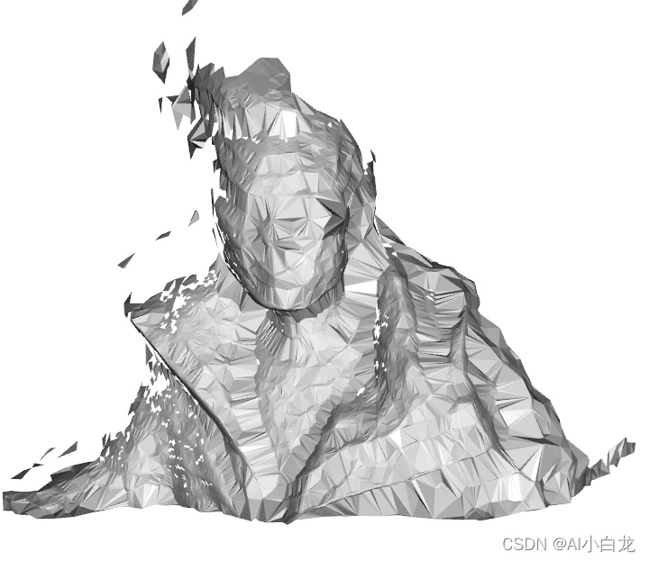 在很多情况下,我们想要生成一个密集的3D几何体,例如,一个三角形网格。然而,从多视角立体视觉方法,或深度传感器,我们只能获得非结构化点云。为了从这个非结构化输入中得到一个三角形网格,我们需要执行表面重建。在文献中有两个方法和Open3D目前实现以下:α形状(Edelsbrunner1983),球旋转(Bernardini1999),泊松表面重建[Kazhdan2006]