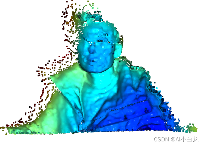 通常使用TOF等3d摄像头采集的格式一般只是深度图,需要经过转化,python这里的方式,先将深度图转化为3D坐标,存储为numpy格式,然后直接使用open3d转化为可视点云。
