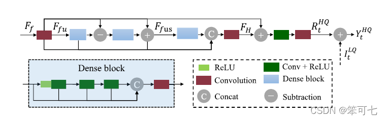 文中在Bottleneck layer之前将4维度转3伟的操作通过reshape函数或者view函数可以实现。两者效果相同。  这里的dense bolck的concat前的一个卷积+ReLU的输出是不是画了两条线的输入了?