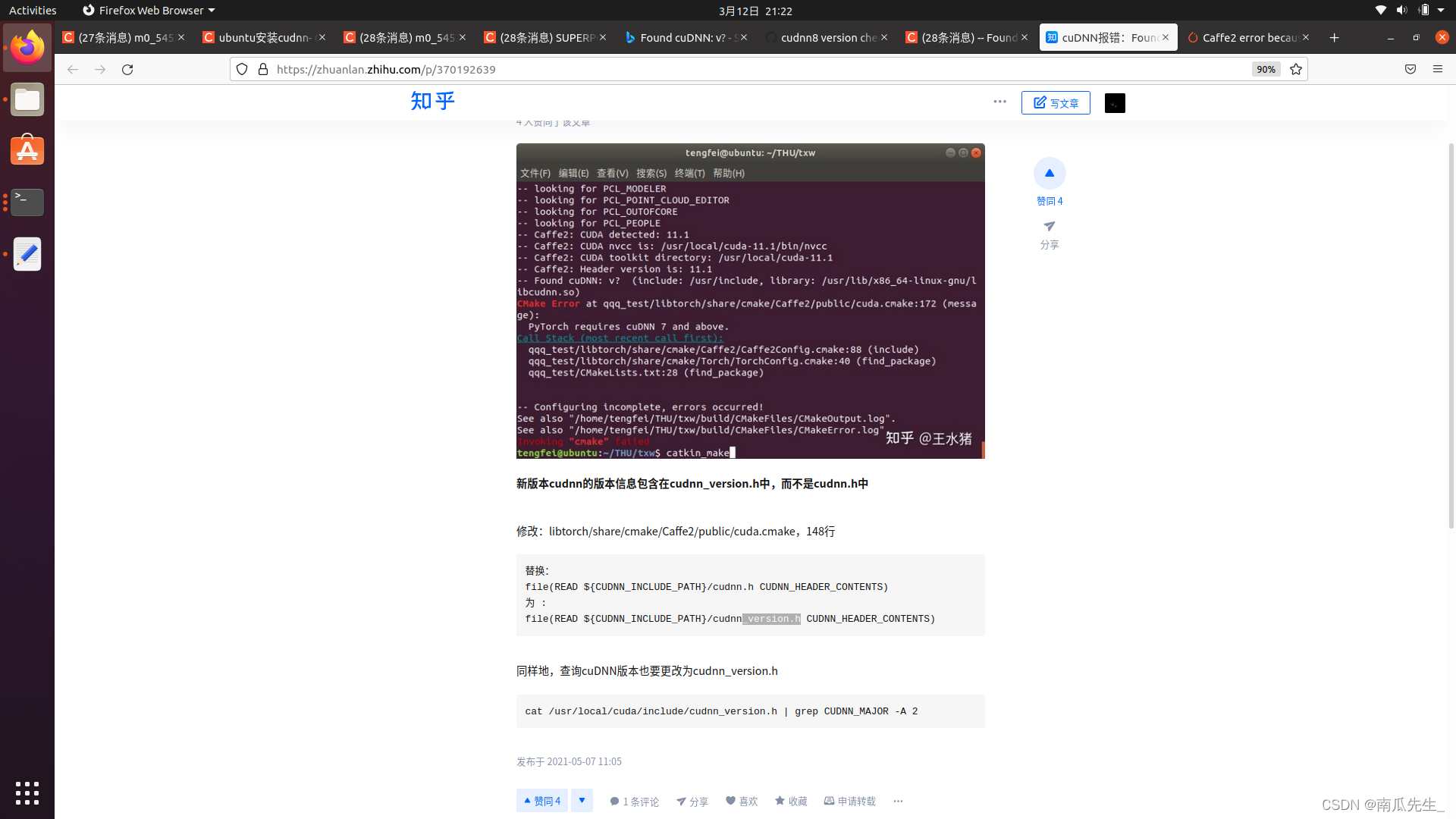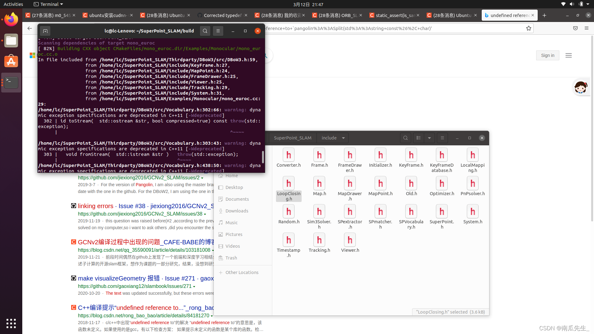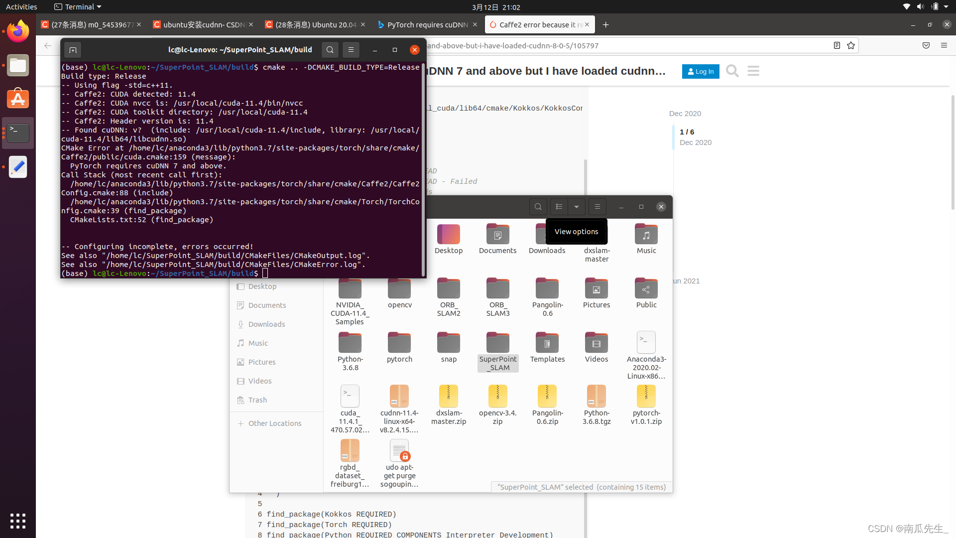 ?error: #error C++14 or later compatible compiler is required to use PyTorch. ??? 4 | #error C++14 or later compatible compiler is required to use PyTorch. ????? |? ^~~~~ In file included from /home/lc/anaconda3/lib/python3.7/site-packages/torch/include/torch/csrc/api/include/torch/types.h:3, ???????????????? from /home/lc/anaconda3/lib/python3.7/site-packages/torch/include/torch/csrc/api/include/torch/data/dataloader_options.h:4, ???????????????? from /home/lc/anaconda3/lib/python3.7/site-packages/torch/include/torch/csrc/api/include/torch/data/dataloader/base.h:3, ???????????????? from /home/lc/anaconda3/lib/python3.7/site-packages/torch/include/torch/csrc/api/include/torch/data/dataloader/stateful.h:3, ???????????????? from /home/lc/anaconda3/lib/python3.7/site-packages/torch/include/torch/csrc/api/include/torch/data/dataloader.h:3, ???????????????? from /home/lc/anaconda3/lib/python3.7/site-packages/torch/include/torch/csrc/api/include/torch/data.h:3, ???????????????? from /home/lc/anaconda3/lib/python3.7/site-packages/torch/include/torch/csrc/api/include/torch/all.h:8, ???????????????? from /home/lc/anaconda3/lib/python3.7/site-packages/torch/include/torch/csrc/api/include/torch/torch.h:3, ???????????????? from /home/lc/SuperPoint_SLAM/include/SPextractor.h:28, ???????????????? from /home/lc/SuperPoint_SLAM/include/KeyFrame.h:30, ???????????????? from /home/lc/SuperPoint_SLAM/include/MapPoint.h:24, ???????????????? from /home/lc/SuperPoint_SLAM/include/FrameDrawer.h:25, ???????????????? from /home/lc/SuperPoint_SLAM/include/Viewer.h:25, ???????????????? from /home/lc/SuperPoint_SLAM/include/Tracking.h:29, ???????????????? from /home/lc/SuperPoint_SLAM/include/System.h:31, ???????????????? from /home/lc/SuperPoint_SLAM/src/System.cc:23: /home/lc/anaconda3/lib/python3.7/site-packages/torch/include/ATen/ATen.h:4:2: error: #error C++14 or later compatible compiler is required to use ATen. ??? 4 | #error C++14 or later compatible compiler is required to use ATen. ????? |? ^~~~~ In file included from /home/lc/anaconda3/lib/python3.7/site-packages/torch/include/c10/util/ArrayRef.h:19, ???????????????? from /home/lc/anaconda3/lib/python3.7/site-packages/torch/include/c10/core/DispatchKey.h:7, ???????????????? from /home/lc/anaconda3/lib/python3.7/site-packages/torch/include/c10/core/Backend.h:4, ???????????????? from /home/lc/anaconda3/lib/python3.7/site-packages/torch/include/c10/core/Layout.h:3, ???????????????? from /home/lc/anaconda3/lib/python3.7/site-packages/torch/include/ATen/core/TensorBody.h:4, ???????????????? from /home/lc/anaconda3/lib/python3.7/site-packages/torch/include/ATen/Tensor.h:3, ???????????????? from /home/lc/anaconda3/lib/python3.7/site-packages/torch/include/ATen/Context.h:4, ???????????????? from /home/lc/anaconda3/lib/python3.7/site-packages/torch/include/ATen/ATen.h:9, ???????????????? from /home/lc/anaconda3/lib/python3.7/site-packages/torch/include/torch/csrc/api/include/torch/types.h:3, ???????????????? from /home/lc/anaconda3/lib/python3.7/site-packages/torch/include/torch/csrc/api/include/torch/data/dataloader_options.h:4, ???????????????? from /home/lc/anaconda3/lib/python3.7/site-packages/torch/include/torch/csrc/api/include/torch/data/dataloader/base.h:3, ???????????????? from /home/lc/anaconda3/lib/python3.7/site-packages/torch/include/torch/csrc/api/include/torch/data/dataloader/stateful.h:3, ???????????????? from /home/lc/anaconda3/lib/python3.7/site-packages/torch/include/torch/csrc/api/include/torch/data/dataloader.h:3, ???????????????? from /home/lc/anaconda3/lib/python3.7/site-packages/torch/include/torch/csrc/api/include/torch/data.h:3, ???????????????? from /home/lc/anaconda3/lib/python3.7/site-packages/torch/include/torch/csrc/api/include/torch/all.h:8, ???????????????? from /home/lc/anaconda3/lib/python3.7/site-packages/torch/include/torch/csrc/api/include/torch/torch.h:3, ???????????????? from /home/lc/SuperPoint_SLAM/include/SPextractor.h:28, ???????????????? from /home/lc/SuperPoint_SLAM/include/KeyFrame.h:30, ???????????????? from /home/lc/SuperPoint_SLAM/include/MapPoint.h:24, ???????????????? from /home/lc/SuperPoint_SLAM/include/FrameDrawer.h:25, ???????????????? from /home/lc/SuperPoint_SLAM/include/Viewer.h:25, ???????????????? from /home/lc/SuperPoint_SLAM/include/Tracking.h:29, ???????????????? from /home/lc/SuperPoint_SLAM/include/System.h:31, ???????????????? from /home/lc/SuperPoint_SLAM/src/System.cc:23: /home/lc/anaconda3/lib/python3.7/site-packages/torch/include/c10/util/C++17.h:24:2: error: #error You need C++14 to compile PyTorch ?? 24 | #error You need C++14 to compile PyTorch ????? |? ^~~~~