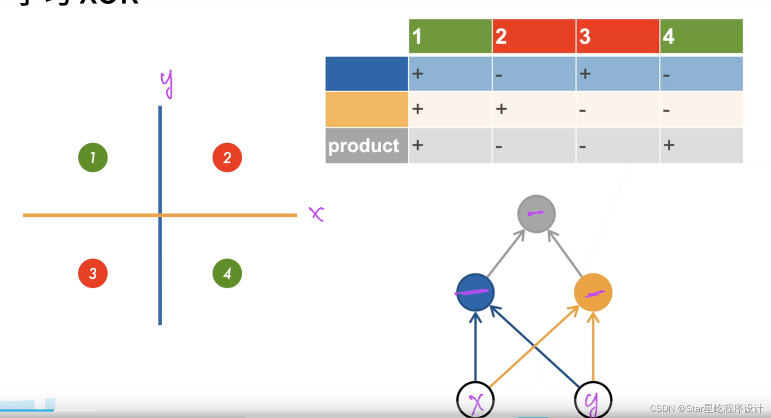 - 可以解决线性分类问题,但是感知机不能拟合XOR问题,因为他只能产生线性分割面
