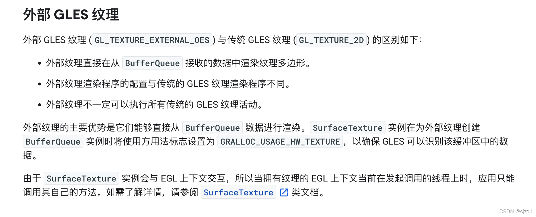????????用途:OES纹理无论是用于安卓下的相机预览数据获取,还是播放器播放画面的获取,都是比较容易实现的一种途径。把OES纹理输入到片元shader后,即可在采样过程中实现各种各样的图像处理操作,如降噪、美颜、滤镜等,这是在安卓下进行比较复杂的实时图像处理的常用入口。搭配NDK即可实现图像处理和OpenGL方面的代码使用C++进行编写以实现代码跨端,既能在安卓上使用,也能在别的平台上复用。其实安卓的GLES30、GLES20等库本身也是通过JNI调用native下的GL函数而已,只要GLSurfaceView建立成功,则当前进程的EGLContext就已经建立成功,这个时候无论是调用GLES20等库,还是直接在JNI上调用C下的GL函数,只要还是在同一个进程同一个EGLContext环境下,那这个调用就基本上是等价的。