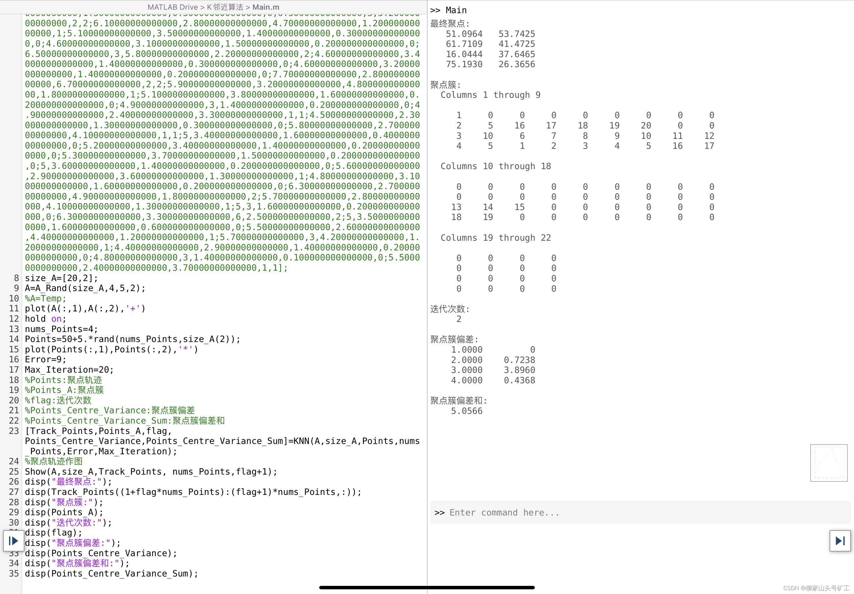 [Track_Points,Points_A,flag, Points_Centre_Variance,Points_Centre_Variance_Sum]=KNN(A,size_A,Points,nums_Points,Error,Max_Iteration);