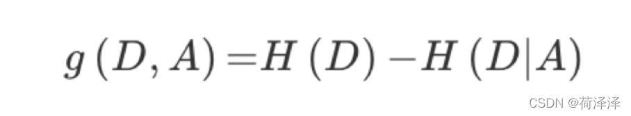 特征A对训练数据集D的信息增益g(D,A),定义为集合D的信息熵H(D)与特征A给定条件下D的信息条件熵H(D|A)之差。表示的是当得到某特征时,总的不确定性减少程度