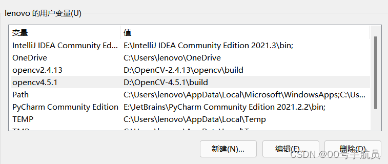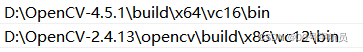 - 将OpenCV.4.13的bin路径加到用户变量path里(参考的博客里一个用了x86一个用了x64我也不知道为什么那就也这么弄吧)