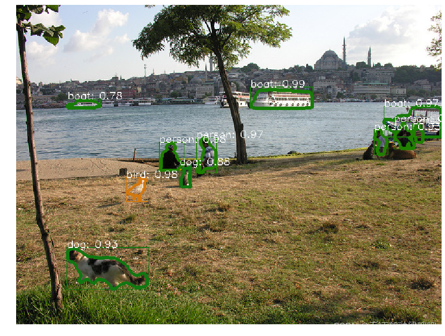 用jupyter跑demo/Mask_R-CNN_demo.ipnb文件,效果如下: (记得要把cpu改成cuda):