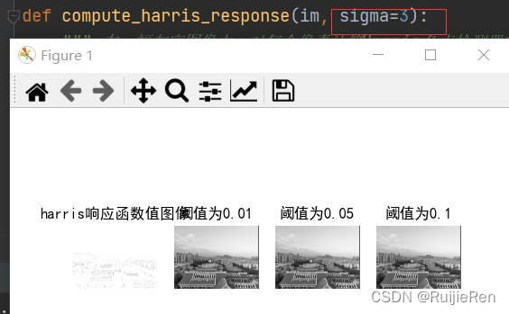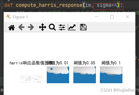 ? ? ? ? ?在判断角点的时候,对角点响应函数R进行阈值处理:R?> threshold,提取R的局部极大值。